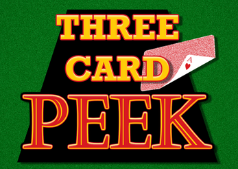 Three-Card Peek is a three-card poker game where you choose between a (left) three-card hand when you can see two of the cards, or a (right) 4-card hand where you can only see one-card but then form your best three-card hand.