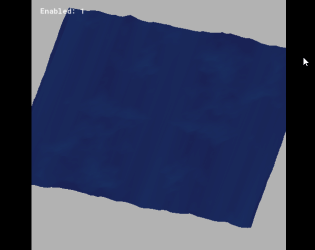 This is a very simple GLSL vector shader prototype, mapping Perlin noise onto a white plane and coloring it to give a very rudimentary water plane with static ripples.